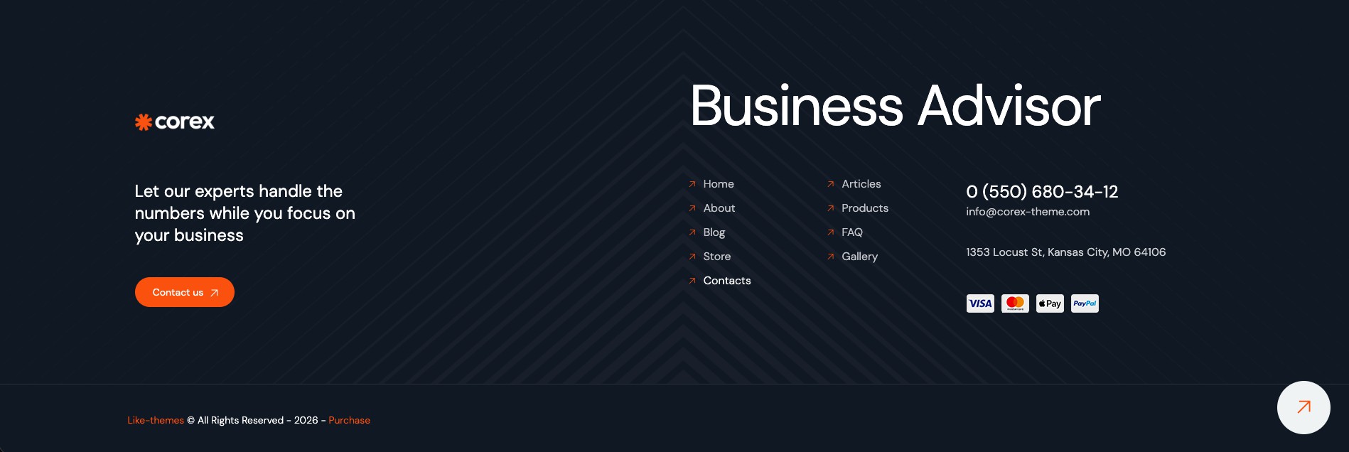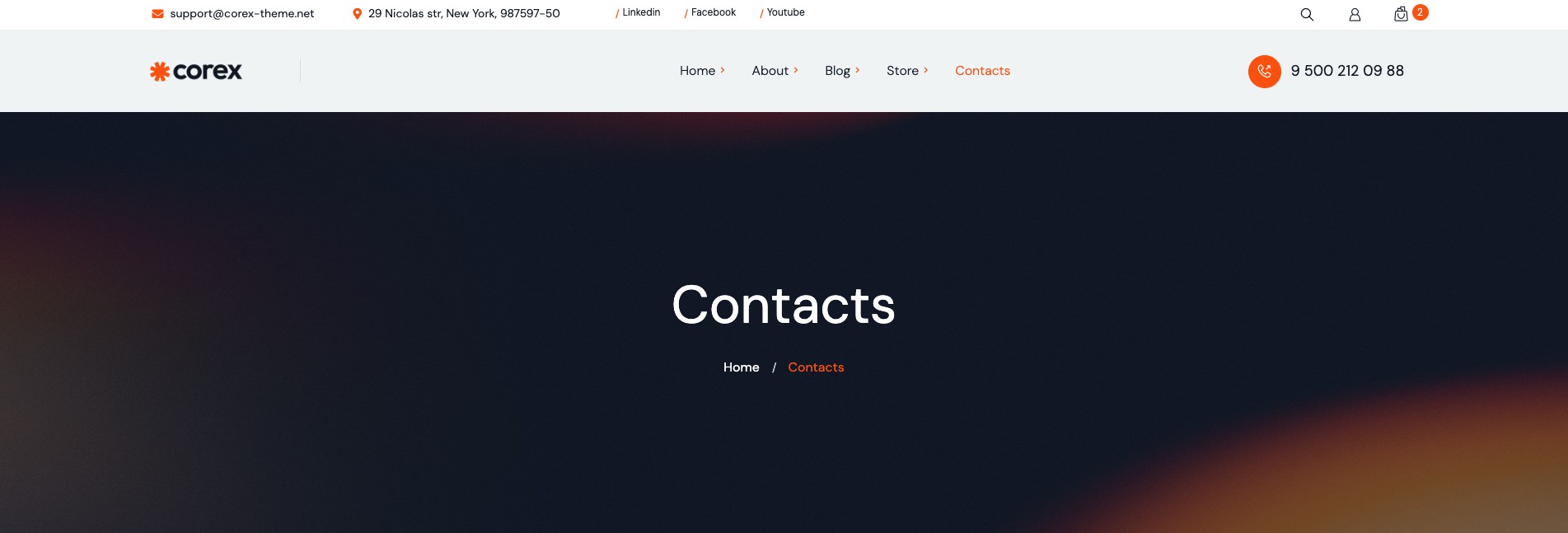 main Corex Theme. Child Theme allows you to add/modify CSS